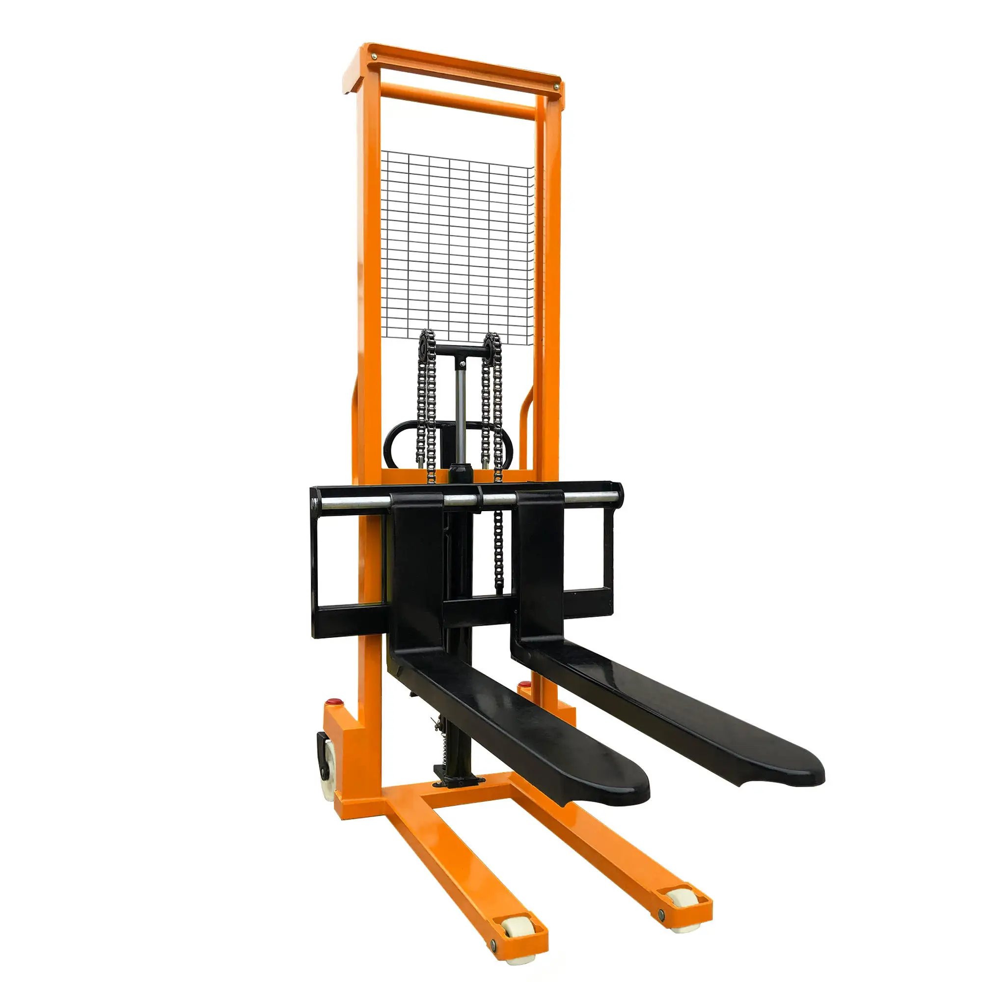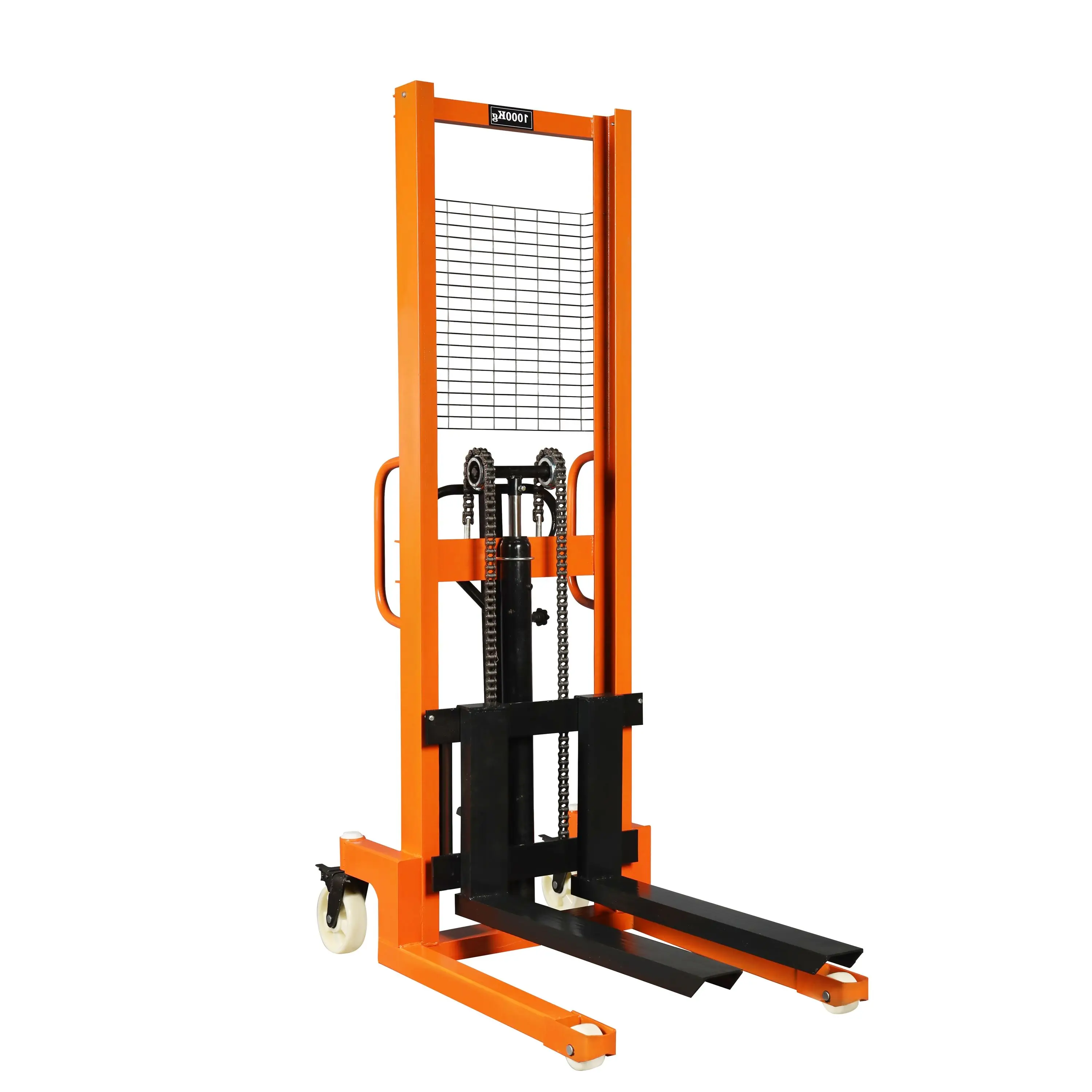 Our 1ton and 2ton hand lifter hydraulic manual stacker—an all-in-one lifting platform and manual hand fork lifter—boasts industrial-grade, user-centric features tailored for seamless operation and long-lasting durability, starting with its high-performance hydraulic system that delivers effortless lifting and lowering of loads with minimal physical effort from the operator. The stacker features a streamlined, heavy-duty steel frame optimized for maximum maneuverability, gliding easily through narrow warehouse aisles, tight retail stockrooms, and small manufacturing work bays where larger powered equipment cannot access. Built with corrosion-resistant metal finishes and reinforced load-bearing forks, this manual hand fork lifter provides stable, secure support for all standard pallets, crates, and bulk goods during every lift, transport, and stacking action—even with continuous daily use. The stacker integrates an ergonomic non-slip control lever, designed to reduce hand and arm fatigue during repeated operation, and its smooth-rolling precision wheels glide seamlessly across concrete, tile, and wooden flooring without scuffing or damaging surfaces. Every component of this hydraulic manual stacker is engineered for zero-fuss maintenance, with sealed hydraulic parts that prevent leaks and dust buildup, and wear-resistant components that eliminate the need for frequent part replacements or servicing.