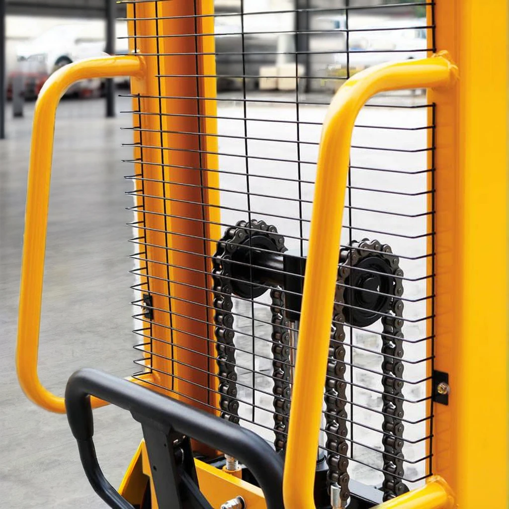 Core Features of Our Heavy Duty Manual StackerOur high quality heavy duty manual stacker—CE certified and ISO 9001 compliant—boasts a suite of industrial-grade features tailored for warehouse, logistics, and industrial use, starting with its robust heavy-duty frame that delivers uncompromising strength for continuous daily operation and heavy load handling. The manual stacker is designed for effortless easy operation, with an intuitive hydraulic control system that requires minimal physical effort to lift and lower loads, reducing operator fatigue during long shifts and eliminating the need for specialized training. Built for flexible maneuver, the stacker features a compact, streamlined design that glides seamlessly through narrow warehouse aisles, tight industrial work bays, and crowded logistics staging zones, with smooth-rolling components that ensure stable movement across concrete and industrial flooring. Prioritizing durability and safety, every structural element of the manual stacker is engineered to resist wear and tear, with reinforced load-bearing parts and reliable braking systems that add critical layers of protection for operators and cargo alike. As a low maintenance solution, the stacker features sealed hydraulic components and wear-resistant parts that prevent dust and debris buildup, eliminating frequent servicing and part replacements for nonstop operation.